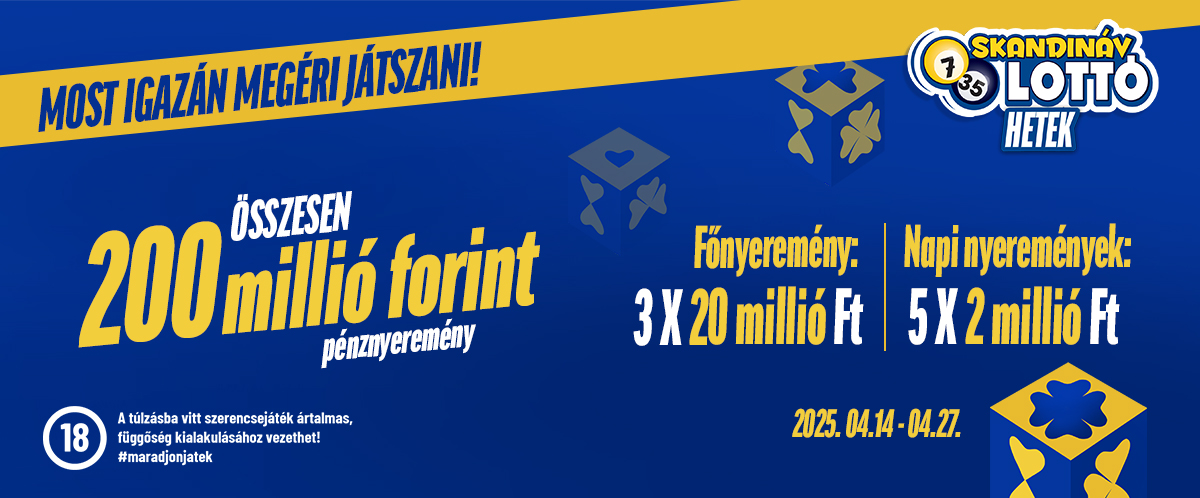 Mindazok, akik 2025. április 14-27. között bármely akciós napon egy szelvényen legalább 2400 forint értékben (amelybe a Joker játék(ok) értéke nem számít bele) küldik játékba bármely játékmódban normál, kombinációs, egy- vagy öthetes akciós Skandináv lottó játékukat, automatikusan résztvevői lesznek a sorsolásoknak.