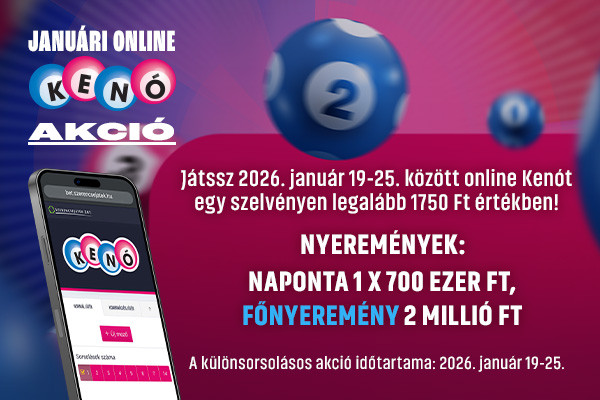 Játssz Kenót online egy szelvényen legalább 1.750 Ft értékben, és nyerd meg az akció napi 700.000 Ft-os pénznyeremény egyikét, és akár a 2 millió Ft főnyereményt is!