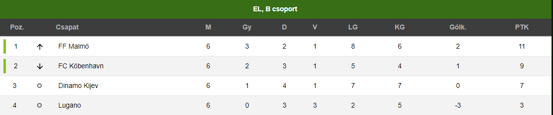 Az EL B csoportjában másodikként zárt az FC Köbenhavn