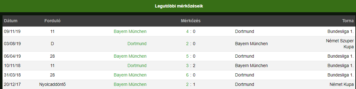 A közelmúlt derbijei érdekes képet mutatnak: a legutóbbi hat összecsapásukon mindig a hazai pályán szereplő együttes ünnepelhetett. A Bayern München utoljára 2017 novemberében tudott vendégként diadalmaskodni ősi riválisa ellen, de abban mindenképpen bizakodhatnak a bajorok, hogy házon kívül ők büszkélkedhetnek a legjobb mutatóval (9-2-2) a ligában, utolsó hat idegenbeli bajnokijukat behúzták, és ebben a szezonban egyetlen vendégként lejátszott Bundesliga-meccsükön sem maradtak szerzett gól nélkül. Sőt, legutóbbi három házon kívüli fellépésükön mindkét játékrészben eredményesnek bizonyultak. Egy ilyen forgatókönyv most 2,00-s szorzót érne a Vendégcsapat szerez gól mindkét félidőben? piacon. Csakhogy a Dortmund otthon még veretlen − 10-3-0-s mérlege, 45-10-es gólkülönbsége magáért beszél −, zsinórban öt hazai bajnokin győzedelmeskedett, és legutóbbi négy dortmundi ligameccsén még csak gólt sem kapott. Ha a félelmetes bajor támadógépezetet is hatástalanítanák, az 7,75-ös oddsot jelentene a Hazai csapat kapott gól nélkül játssza le a mérkőzést piacon. Nehéz tehát megjósolni, hogy mire számíthatunk a német csúcsderbin, de egy tuti tippel mindenképpen szolgálhatunk: remek meccsre van kilátás!