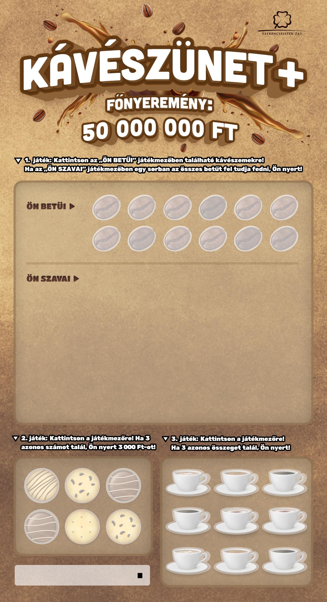 A próbajáték az eredeti e-sorsjegy alapján a játékmenet kipróbálására és a nyerési lehetőségek bemutatására szolgál. Nyerési esélyében és az elérhető nyeremények összegében eltér a valódi