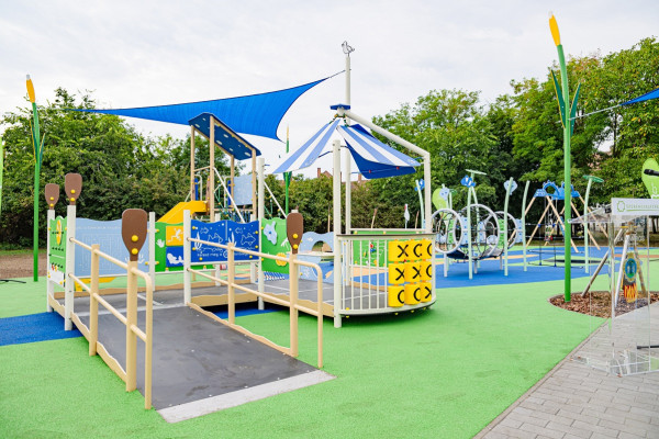 A térségre jellemző vízi világ témakörben akadálymentes játékelemekkel várja látogatóit a Szerencsejáték Zrt. „A játék összeköt” programja keretében épült legújabb befogadó játszótér Baján. A közösségi tér célja, hogy segítse az ép- és fogyatékossággal élő gyermekek közös játékát és az elfogadást.
