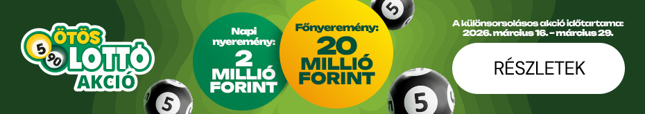 2026. március 16-29. • Legalább 1600 Ft értékű játék • Napi nyeremény: 2 millió Ft • Főnyeremény: 20 millió Ft • Játszom »