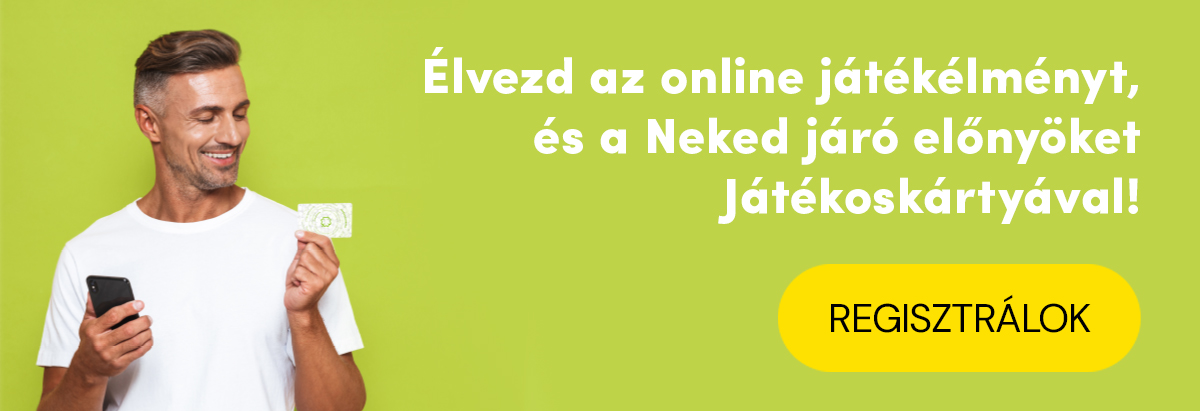 Amennyiben szeretnéd élvezni az online játékélményt és még nincs Játékoskártyád, akkor regisztrálj most. Játékoskártya igényedet regisztrációs űrlap kitöltésével több mint 4000 értékesítőhelyünk egyikén is jelezheted.