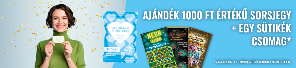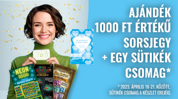 Az ajánlat teljesítéséért járó ajándék 1000 Ft értékű sorsjegy (Aranybánya, Buksza, Heti Bónusz, Mega Black Jack, Nagy Ajándék, NEON 1000, Sok szerencsét! 2023, Ökokaland, Vadvilág 1000) még az adott vásárlás során átadásra kerül a játékos részére.