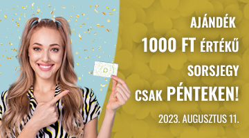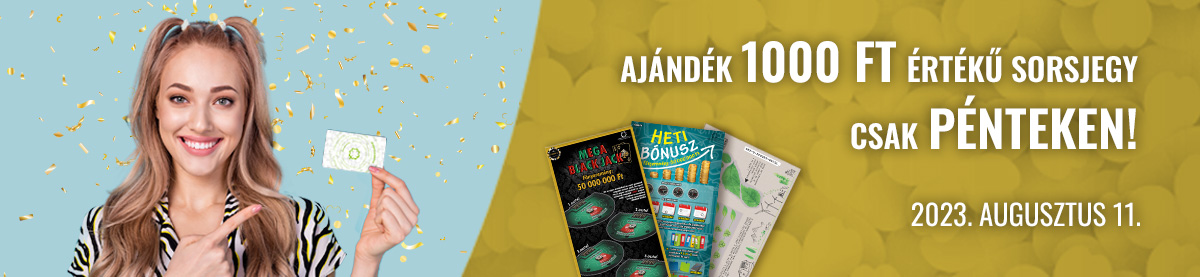 Az ajánlat teljesítéséért járó ajándék 1000 Ft értékű sorsjegy (Buksza, Heti Bónusz, Mega Black Jack, Nagy Ajándék, Nagy Meglepetés, NEON 1000, Puzzle, Sok szerencsét! 2023, Ökokaland, Vadvilág 1000) még az adott vásárlás során átadásra kerül a játékos részére.