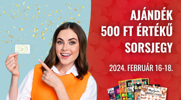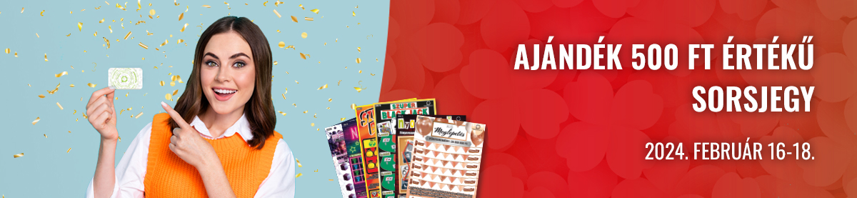 Játssz Játékoskártyáddal február 16-18. között egy szelvényen legalább 1600 Ft értékben Hatoslottót, és egy választható, 500 Ft értékű sorsjegyet (Kis kerék, Kis Meglepetés, NEON 500, Nyomkövető, Szuper Black Jack, Szuper Bankó) ajándékba adunk!
