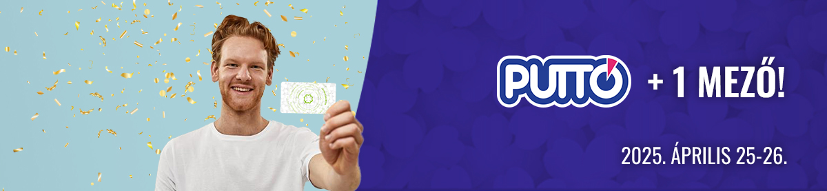Játssz legalább 1600 Ft értékű Puttót Játékoskártyáddal 2025. április 25. 7:00 és április 26. 23:45 között, és 1 db gépi, egy sorsolásra érvényes, egyszeres téttel megjátszott Puttó mezőt kapsz külön átvételi igazoláson.