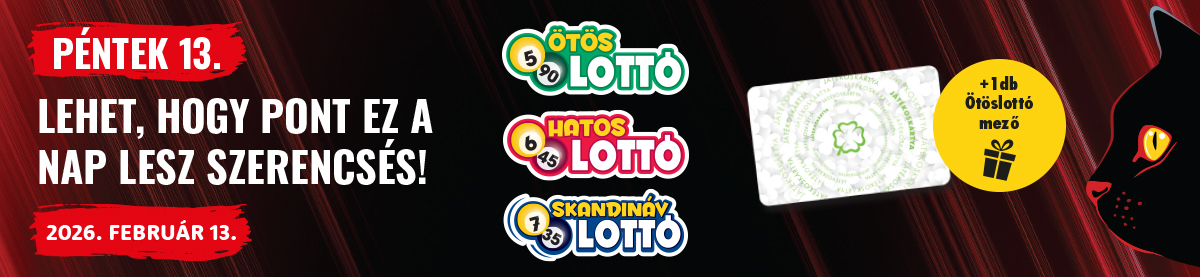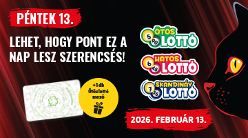 Vásárolj aktív státuszú Játékoskártyáddal 2026. február 13. 7:00 és 23:45 között, egy tranzakcióban legalább 1600 Ft értékű Ötöslottót, Hatoslottót, vagy Skandináv lottót, és 1 db ráadás gépi, egyhetes Ötöslottó mezőt kapsz külön átvételi igazoláson!