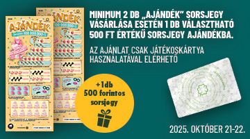 Az ajánlat teljesítéséért járó 1 db ráadás 500 Ft értékű sorsjegy még az adott vásárlás során átadásra kerül a játékos részére.