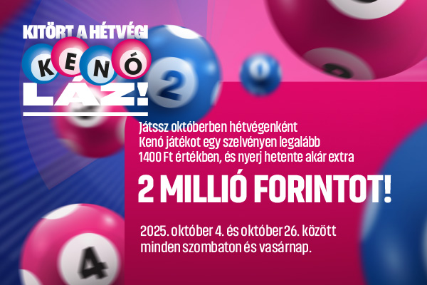 Játssz októberben hétvégenként Kenó játékot egy szelvényen legalább 1400 Ft értékben, és nyerj hetente akár extra 2 millió forintot!