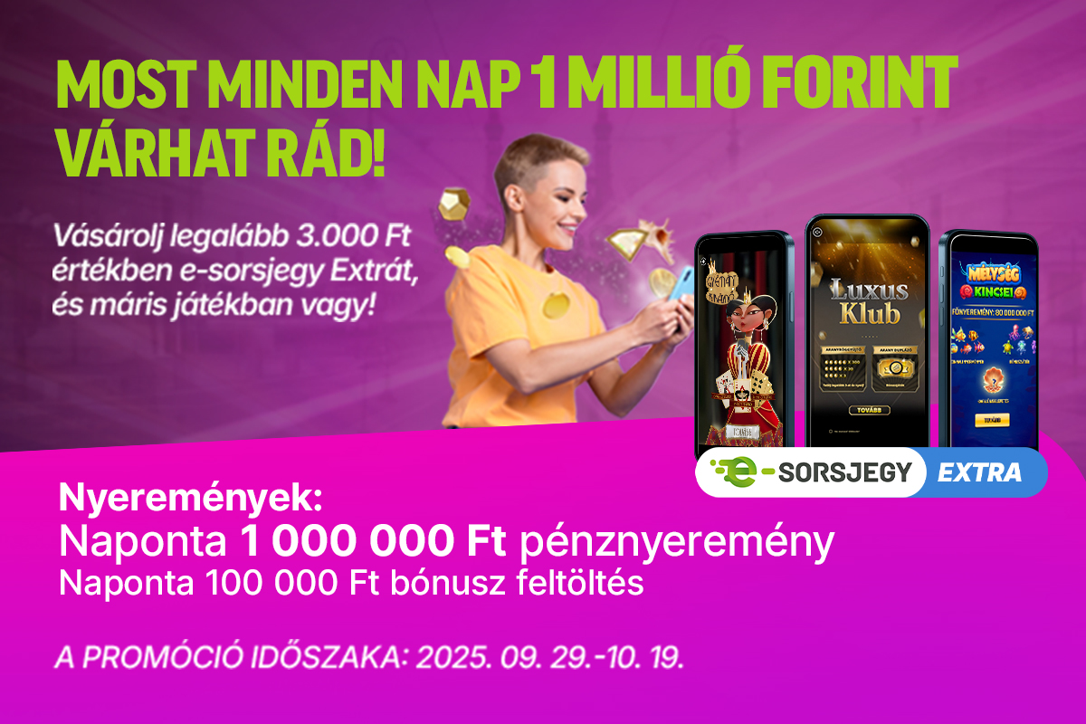 Játssz 2025. szeptember 29. – október 19. közötti e-sorsjegy Extra nyereményjátékunkkal, hogy tiéd lehessen a napi nyeremények egyike!