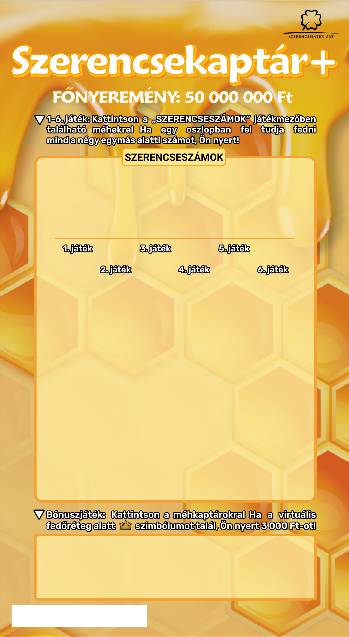 A próbajáték az eredeti e-sorsjegy alapján a játékmenet kipróbálására és a nyerési lehetőségek bemutatására szolgál. Nyerési esélyében és az elérhető nyeremények összegében eltér a valódi e-sorsjegyektől. Az ingyenes bemutatójátékban elért nyeremény nem jelenik meg a játékos egyenlegén.
