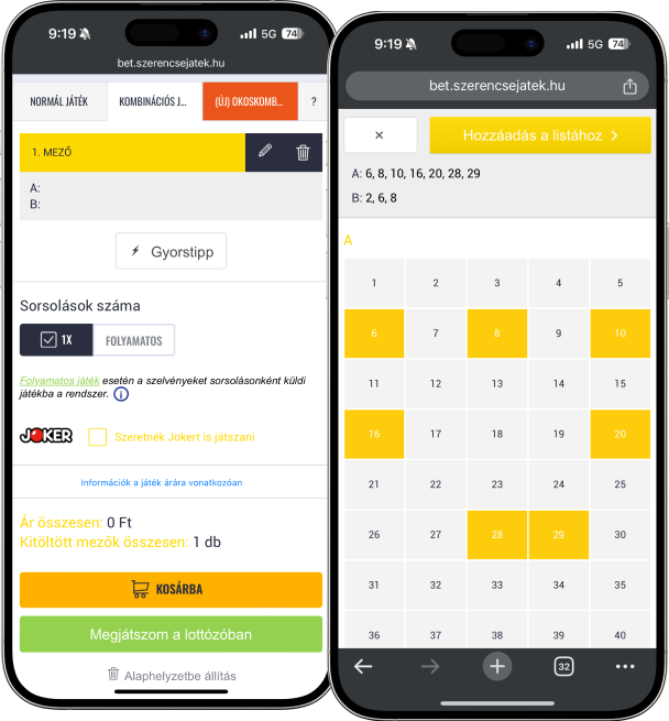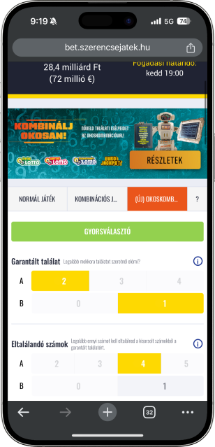 A kombinációs játékhoz hasonlóan az okoskombinációs játékban is több számot adhatsz meg, mint amennyi egy alapjátékban megjátszható, de itt csak kombinációs számokat jelölhetsz.