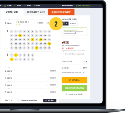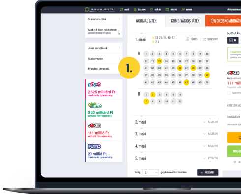 Az Eurojackpot mellett normál, kombinációs játék és okoskombinációs játék esetén is maximum 3 Joker számmező játszható meg interneten.