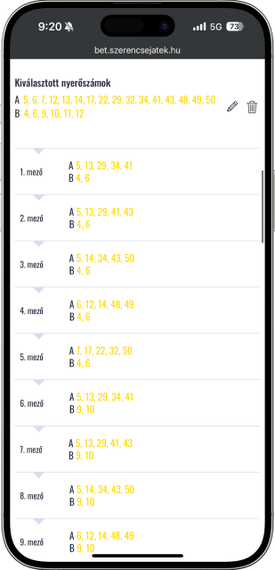 Válassz „A” mezőn 50 számból 5-t, a „B” mezőn pedig 12 számból 2-t!