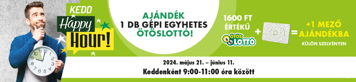 Az aktív státuszú Játékoskártyával rendelkező játékos az ajánlat érvényessége alatt keddenként 09:00 és 11:00 közötti Ötöslottó vásárlása alapján lehet jogosult, a megadott napokon a megadott időszakban legalább 1 db ajándék gépi Ötöslottó mezőre külön átvételi igazoláson, az alábbiak szerint: