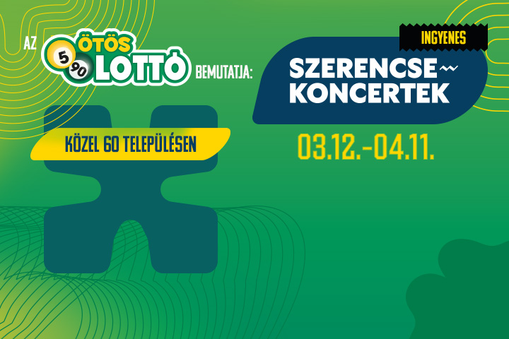 Márciustól 4 héten át ismét Szerencsekoncertekkel viszi a zenei élményt az ország számos pontjára a Szerencsejáték Zrt. ingyenes rendezvénysorozata. Ismert fellépők, hazai sztárok fognak ellátogatni közel 60 településre és adnak fergeteges koncertet. A Szerencsekoncertek támogatója ezúttal Magyarország legrégebbi és talán legismertebb lottójátéka az Ötöslottó.