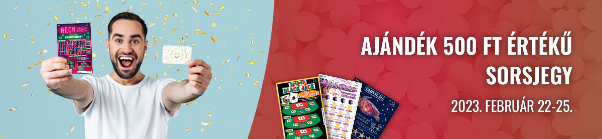 Az ajánlat teljesítéséért járó ajándék 500 Ft értékű sorsjegy (NEON 500, Nyomkövető, Pénzmátrix, Vadvilág 500, Szuper Black Jack, Szuper Bankó, Kiskarácsony 2022) még az adott vásárlás során átadásra kerül a játékos részére.