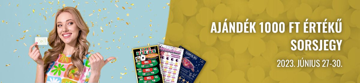 Az ajánlat teljesítéséért járó ajándék 1000 Ft értékű sorsjegy (Buksza, Heti Bónusz, Mega Black Jack, Nagy Meglepetés, NEON 1000, Sok szerencsét! 2023, Ökokaland, Vadvilág 1000) még az adott vásárlás során átadásra kerül a játékos részére.
