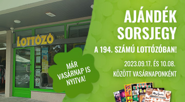 Az ajándékot csak a Szerencsejáték Zrt. 194. számú értékesítőhelyén (2840 Oroszlány, Rákóczi Ferenc út 68.) megjátszott, egyhetes, normál játékmódú Hatoslottó szelvénnyel válthatod ki, melyet Játékoskártyád átadása után vásároltál meg.