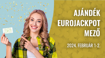Játssz Játékoskártyáddal február 1-2. között egy szelvényen legalább 4, de maximum 19 mező Eurojackpotot, és egy ajándék gépi, normál játékmódú Eurojackpot mezőt adunk a szelvényedhez.