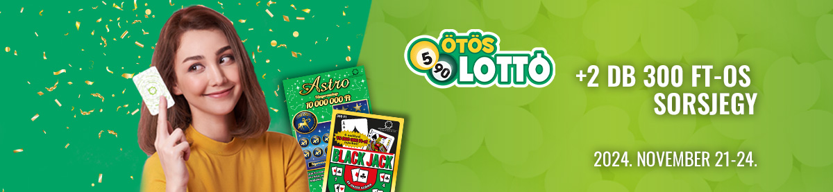 Az ajánlat teljesítéséért járó 2 db 300 Ft értékű sorsjegy (Astro, Black Jack, Fáraók Kincse) még az adott vásárlás során átadásra kerül a játékos részére.