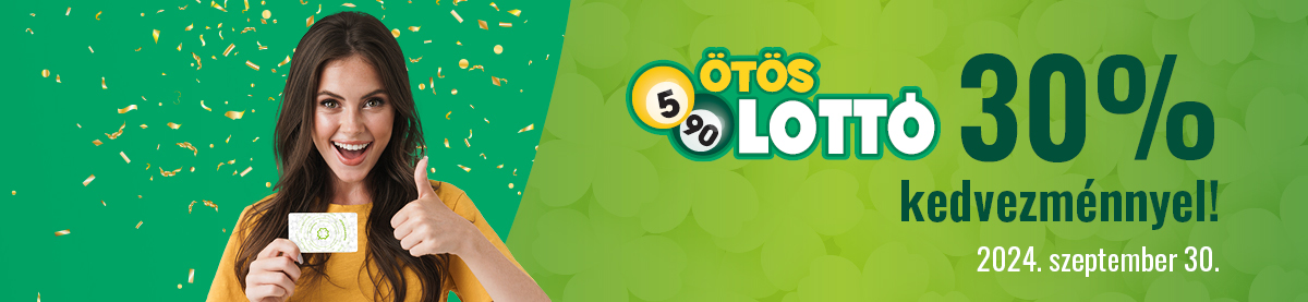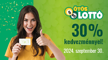 Vásárolj Játékoskártyáddal 2024. szeptember 30-án egy szelvényen legalább 1600 Ft értékben Ötöslottót, és szelvényedből 30%, de maximum 5000 Ft árkedvezményt adunk.