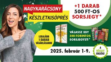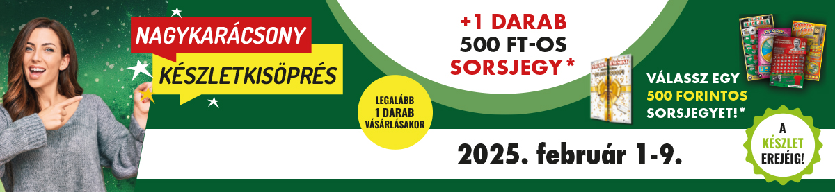 Az ajánlat teljesítéséért járó 1 db választható 500 Ft-os sorsjegy még az adott vásárlás során átadásra kerül a játékos részére.