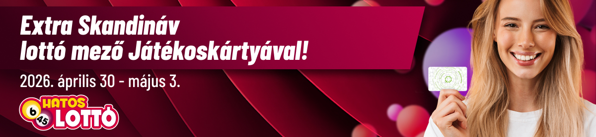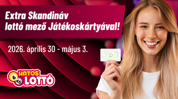 2026. április 30. 7:00 és május 3. 14:30 között legalább 1600 Ft értékben Hatoslottót egy szelvényen, és 1 db ajándék gépi, egy sorsolásra érvényes, Skandináv lottó mezőt kapsz külön szelvényen!