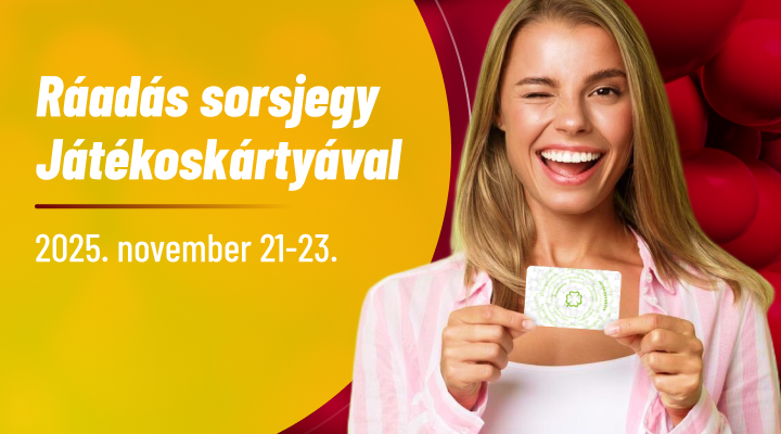 2025. november 21. 7:00 és november 23. 23:45 között legalább 1 db „50x” sorsjegyet, és 1 db választható 500 Ft értékű sorsjegyet kapsz!(Puskás 500, Kis Kerék, Szuper Black Jack, Szuper Bankó, Fáraók Kincse).