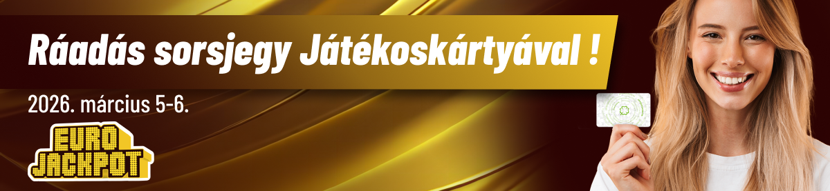 Vásárolj Játékoskártyáddal egy szelvényen legalább 1680 Ft értékű Eurojackpotot 2026. március 5. 7:00 és március 6. 19:00 között, és 1 db választható 500 Ft értékű sorsjegyet kapsz (Puskás 500, Kis Kerék, Szuper Black Jack, Szuper Bankó, Fáraók Kincse, Varázskamra)!