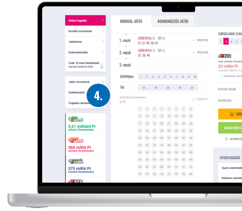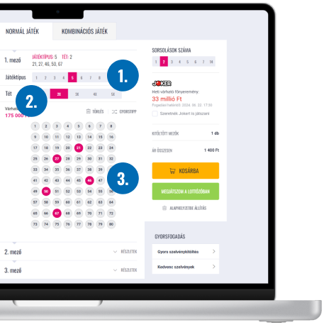 A Kenó mellett normál és kombinációs játék esetén is maximum 3 Joker számmező játszható meg interneten.