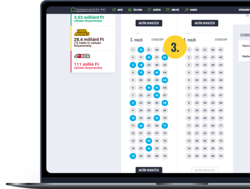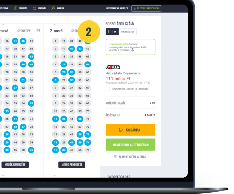 Fizetendő összeg: 300 Ft szorozva alapjátékok számával. Normál játék esetén egy szelvényen maximum 5 számmező játszható meg.