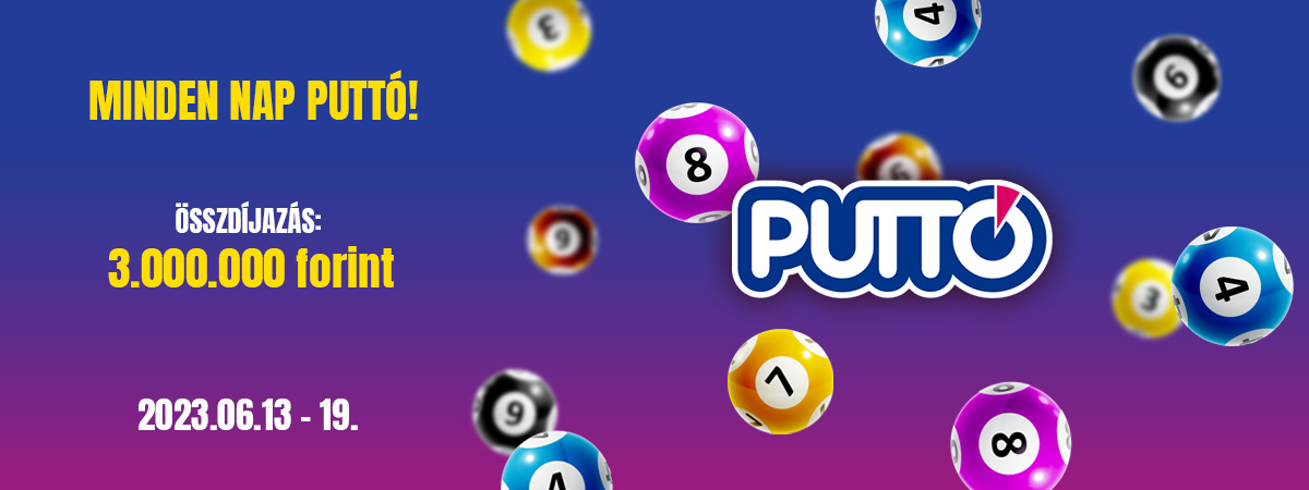 - a nyereményjáték időszakának minden napján megjátszásra került a szerencsejatek.hu oldalon elérhető Puttó játék, minimum 1.750 Ft értékben. Minden nap csak az adott vásárlási napra érvényes Puttó játékok számítanak bele.