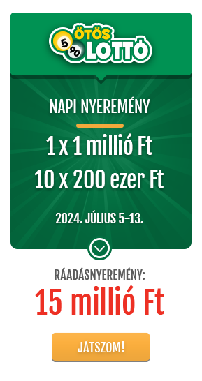 - az Ötöslottó esetében napi 1 x 1 millió Ft és 10 x 200 ezer Ft,