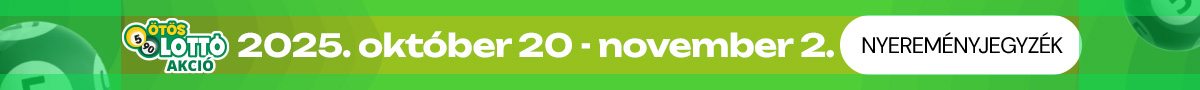 | 1 + 2 találatos 66 479 db nyereménye: 6 965 Ft | 1 + 2 találatos 1 485 db |