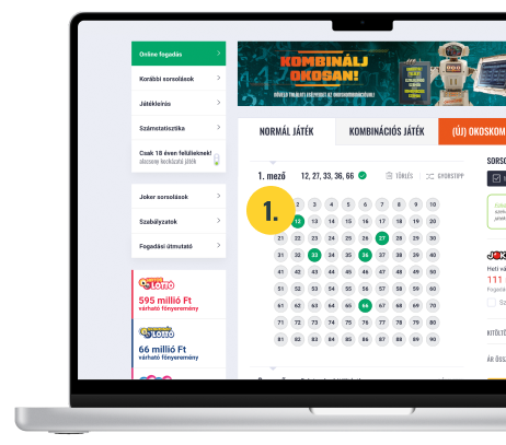 A kombinációs játékhoz hasonlóan az okoskombinációs játékban is több számot adhatsz meg, mint amennyi egy alapjátékban megjátszható, de itt csak kombinációs számokat jelölhetsz.