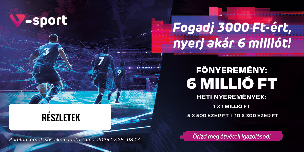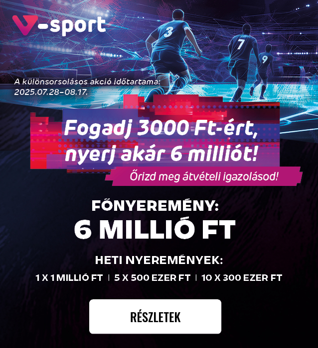Tájékoztatunk, hogy 2025. augusztus 19-én 06:00 és 09:00 között a V-sport fogadás nem lesz elérhető.